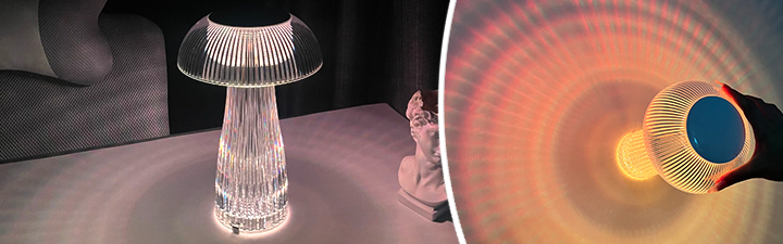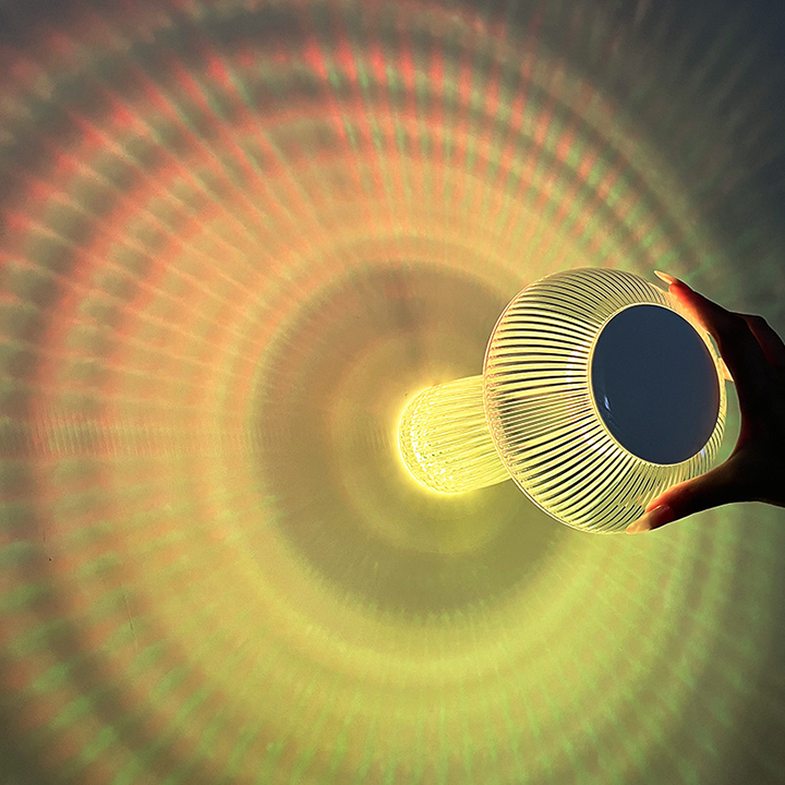With high transmittance, the table lamp uses 3D technology, light and shadow are intertwined, and a layer of geometric line graphics of light are bloomed on the tabletop, creating a romantic atmosphere.