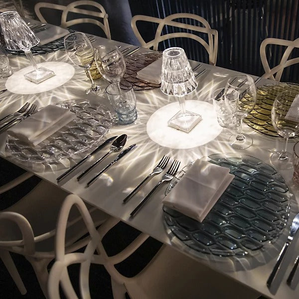 Crystal clear appearance design and charming light when illuminated will add a little charm to any room. A decorative small table lamp can be matched with any style and color of decoration.