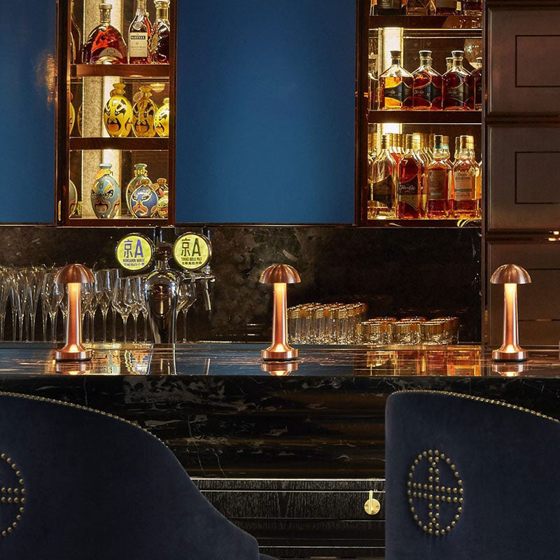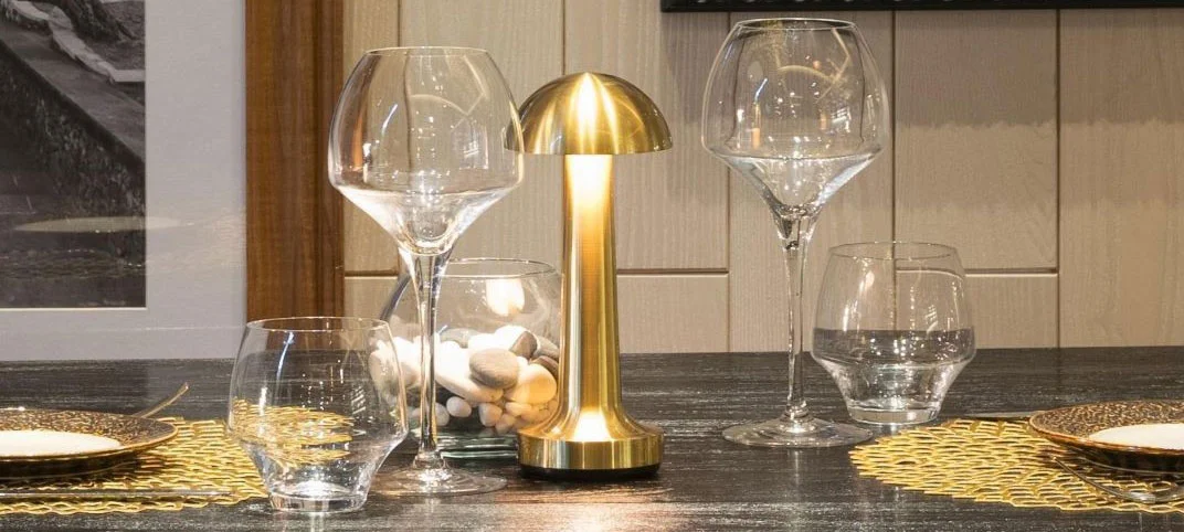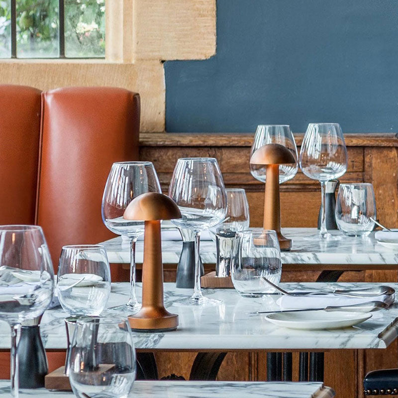 A slim metal-bodied cordless table lamp featuring an enclosed dome diffuser giving maximum direct downlight without glare. Ideal for unobtrusive table lighting and for rooms with views through glass windows as there are minimal reflections.