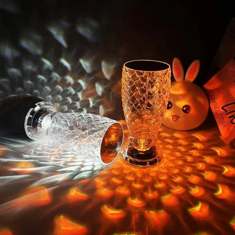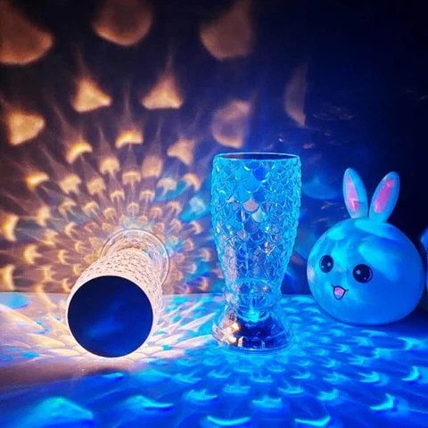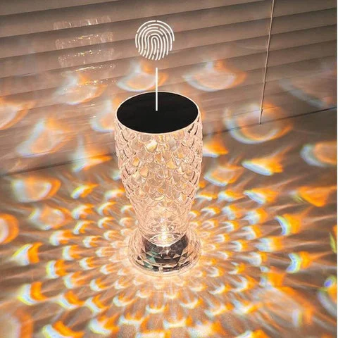 The lamp is made of 3D-carved thickened acrylic and topped with a transparent disc shade, which makes it lighter and more durable than crystal lamps.