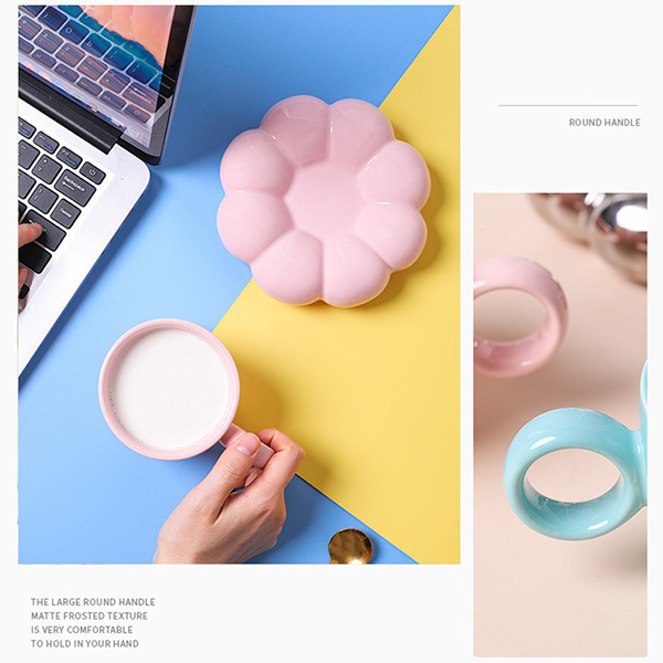 The plates are made from high-quality porcelain, with a smooth and shiny glaze that is both beautiful and easy to clean. The cups are designed to fit perfectly on the plates, ensuring stability and ease of use. The handles of the cups are also crafted with the utmost care, providing a comfortable and secure grip.